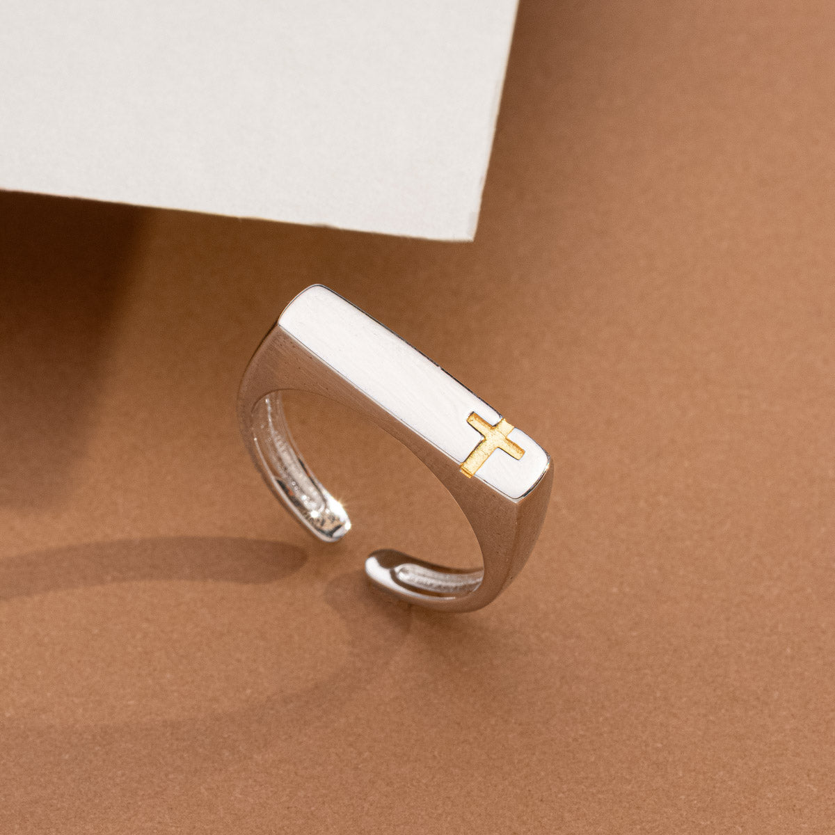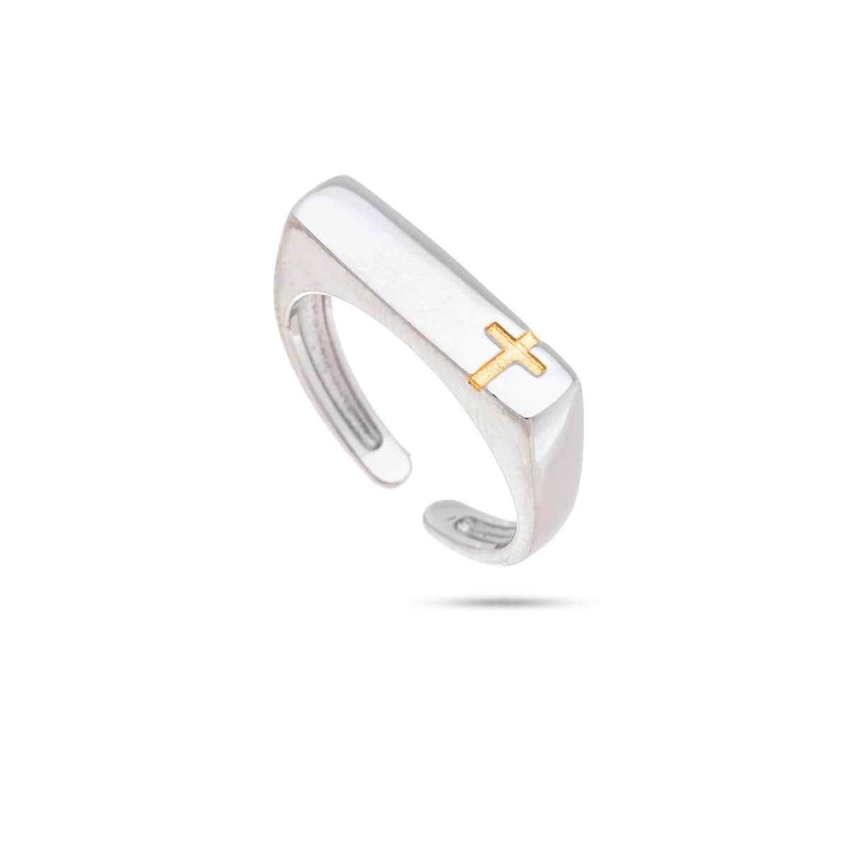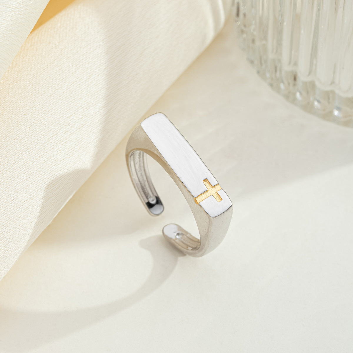 Anel ajustável Unissex Retrô com Cruz em Ouro 18k