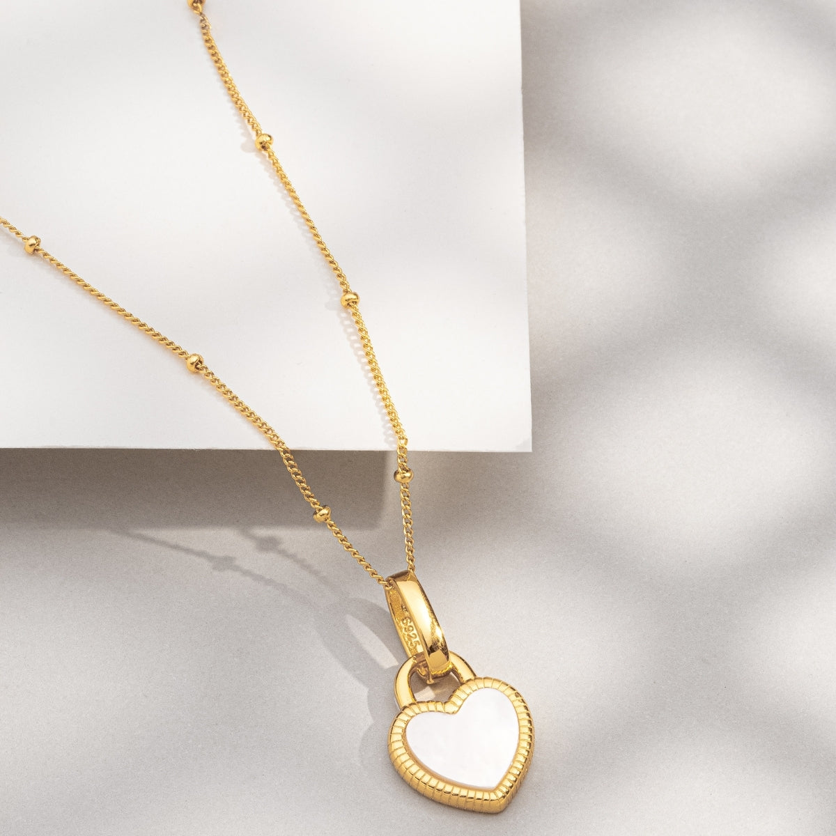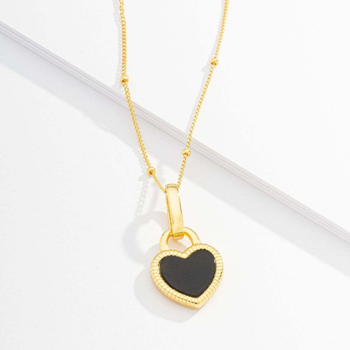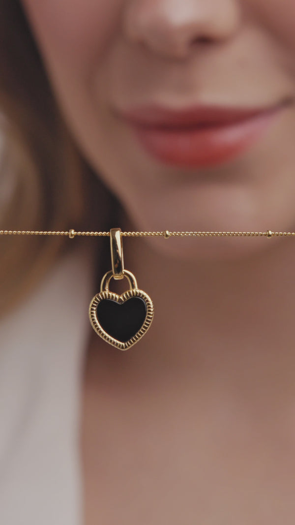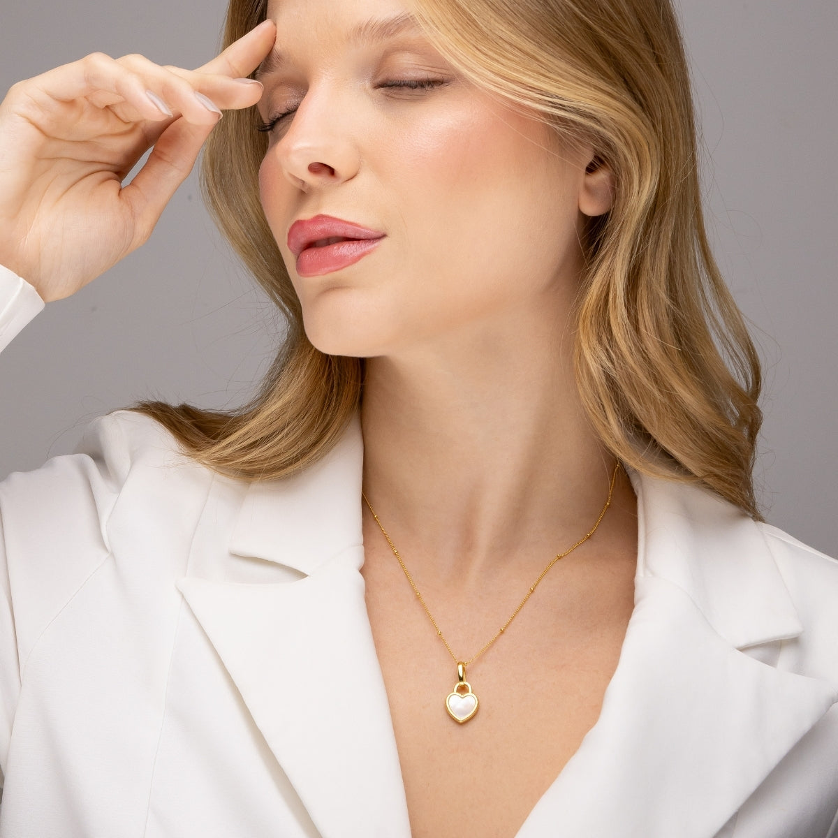 Colar de Coração com Fechadura Frente e Verso Ouro 18k