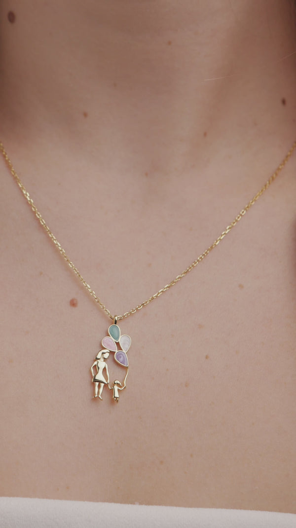 Colar Mãe e Filha Balão colorida ouro amarelo