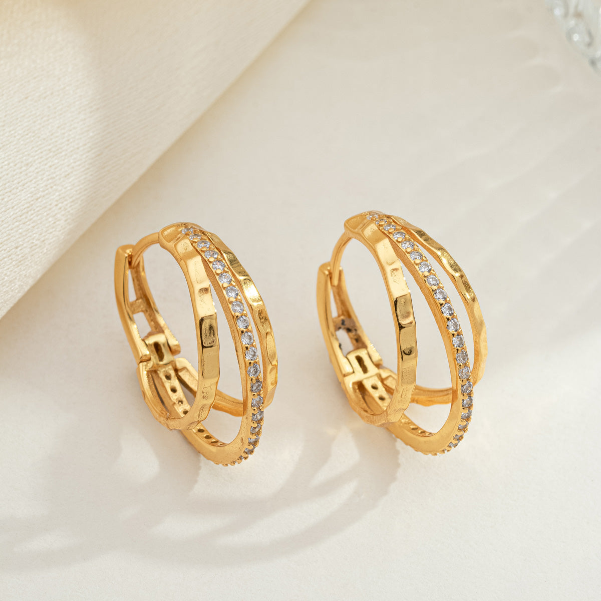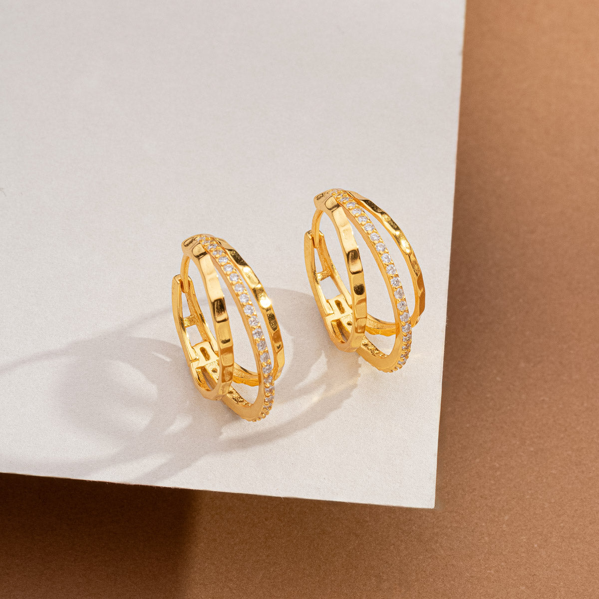 Par de Brincos Minimalista Feminino Luxo Ouro 18k Cravejado